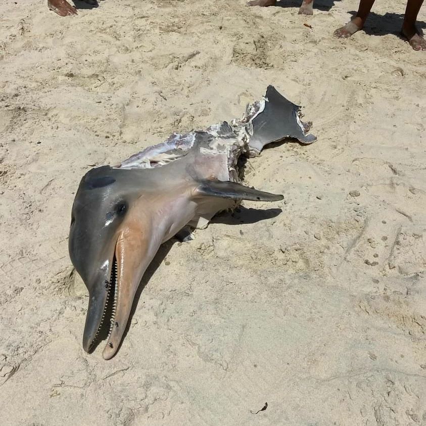 De acordo com uma publicação nas redes sociais do Projeto, a pele do golfinho tem aparência fresca, o que indica que a morte ocorreu há pouco tempo, além de observar que existem vários cortes com bordas serrilhadas e de tamanhos distintos em formato de meia lua, aspectos característicos de mordida de tubarão.